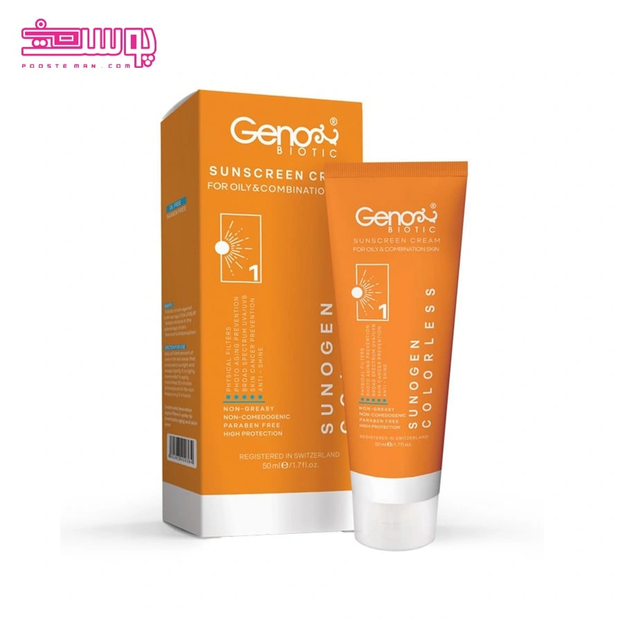 ضد آفتاب پوست چرب بی رنگ ژنوبایوتیک